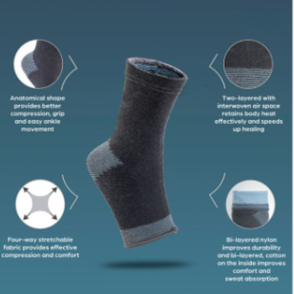 Anklet Comfeel (Pair) is a next generation product, to provide mild compression, warmth, and support to the ankle joint. It is used to allay pain and inflammation, generally associated with old age, arthritis or injury.