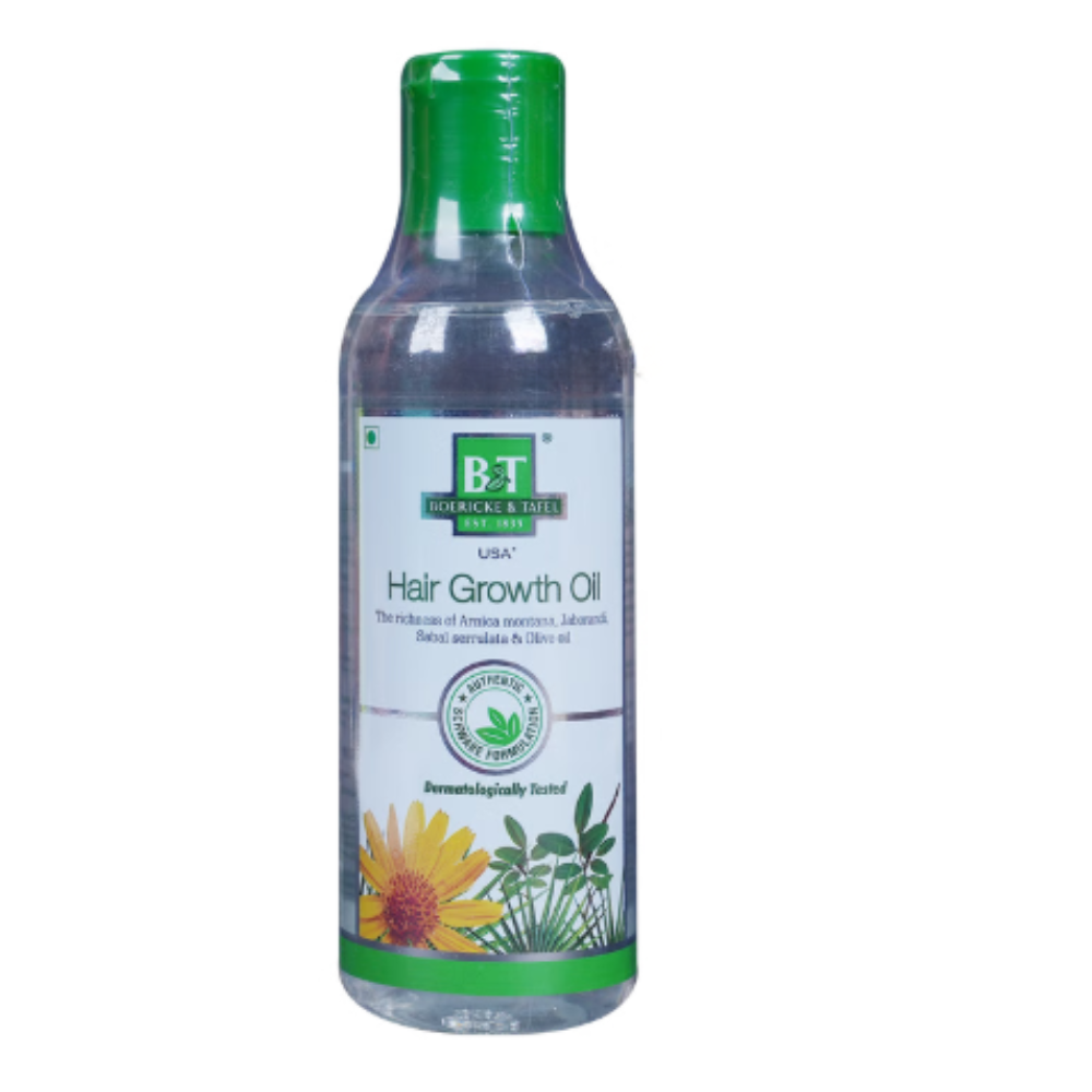 Boericke and Tafel Hair Growth Oil is a carefully selected formula for healthy growth of hair. It may help maintain the blood circulation of the scalp area and can help in cases of premature greying and hair fall. For best results, it is advised to use it along with BandT Arnica Shampoo.