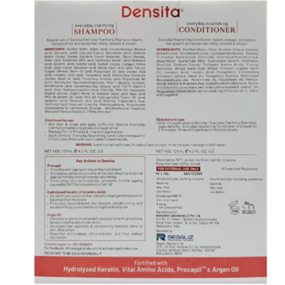 Information about Densita Combo Pack of Everyday Clarifying Shampoo & Everyday Nourshing Conditioner (125ml Each)