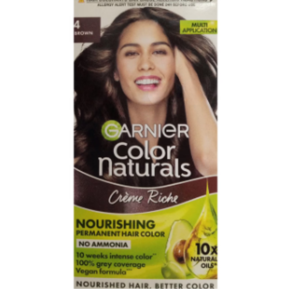 Garnier Color Naturals Creme Rich Hair Color Brown is a nourishing, ammonia-free hair colour enriched with 10X natural oils for deep conditioning and vibrant colour. This long-lasting formula offers 100% grey coverage and keeps hair shiny and smooth for up to 10 weeks. Suitable for both men and women, it’s available in multiple shades to suit every need.