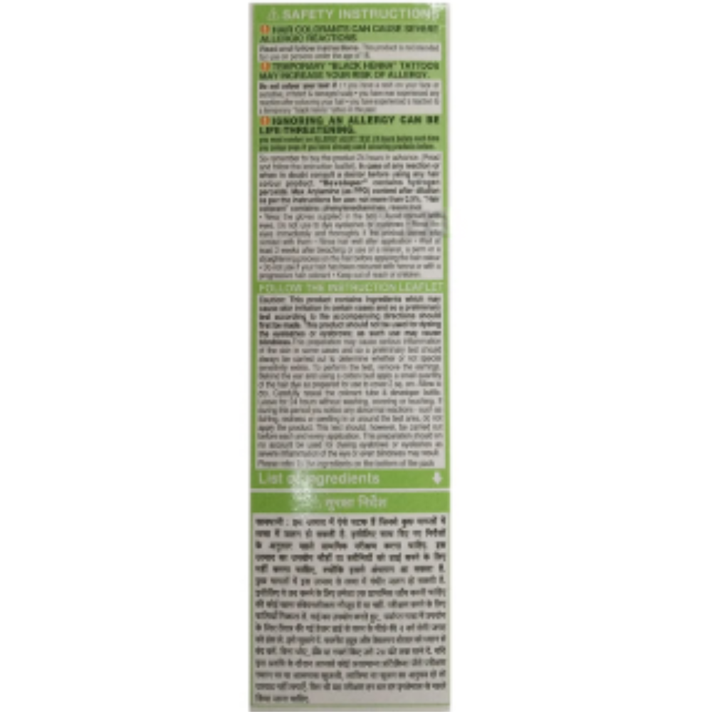 Ignoring allergy can be life threatening. Conduct an allergy alert test 24 hours before each time you colour, even if you have used colouring products before