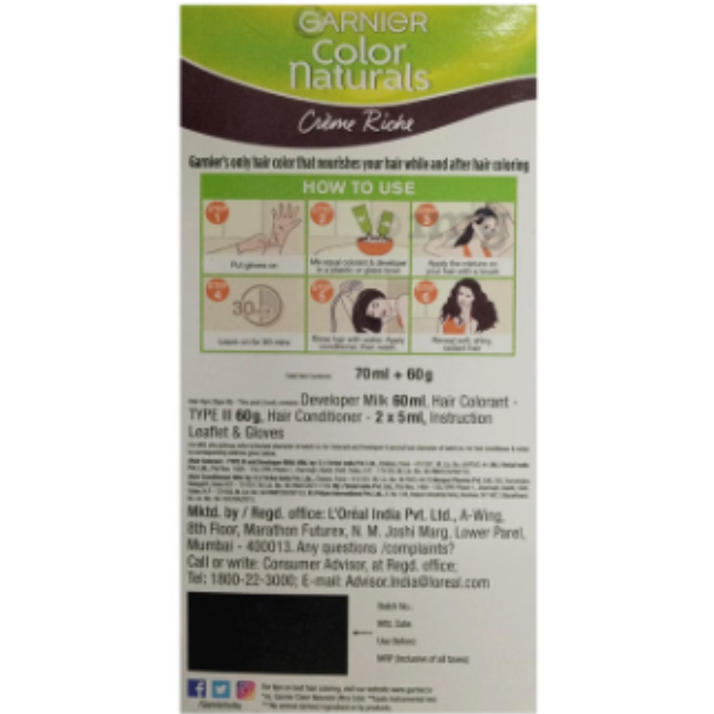 Long-lasting Colour: Garnier Color Naturals provides rich, vibrant colour that lasts up to 10 weeks, maintaining the intensity and shine
