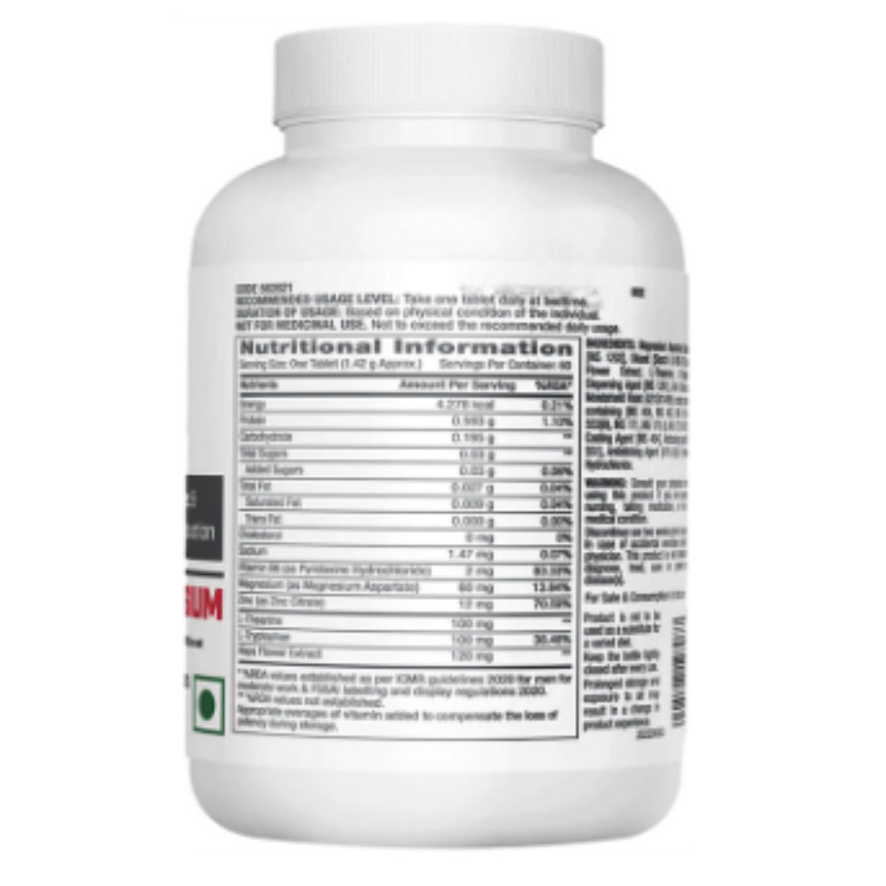 Vitamin B6 (Pyridoxine Hydrochloride),Magnesium,Zinc,L-Theanine,L-Tryptophan,Hops Flower Extract
