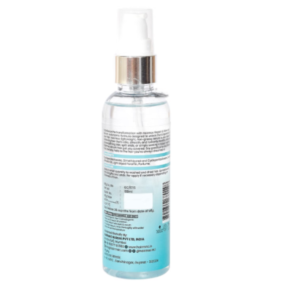 Hairmac Professional Repair & Shine Hair Serum is a salon-grade leave-in treatment that may help restore life to dry, dull, and damaged hair. Its non-greasy, lightweight formula is enriched with hair-conditioning agents that coat each strand to help manage frizz, seal split ends, and add a long-lasting, healthy shine. Whether applied on damp hair post-wash or used to smooth flyaways on dry hair, this serum may act as a protective shield against heat styling, humidity, and environmental stressors. Suitable for daily use, it may help improve texture, detangle easily, and maintain moisture levels, giving the hair a smooth, polished, and revitalized appearance.