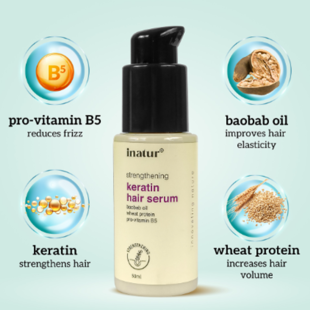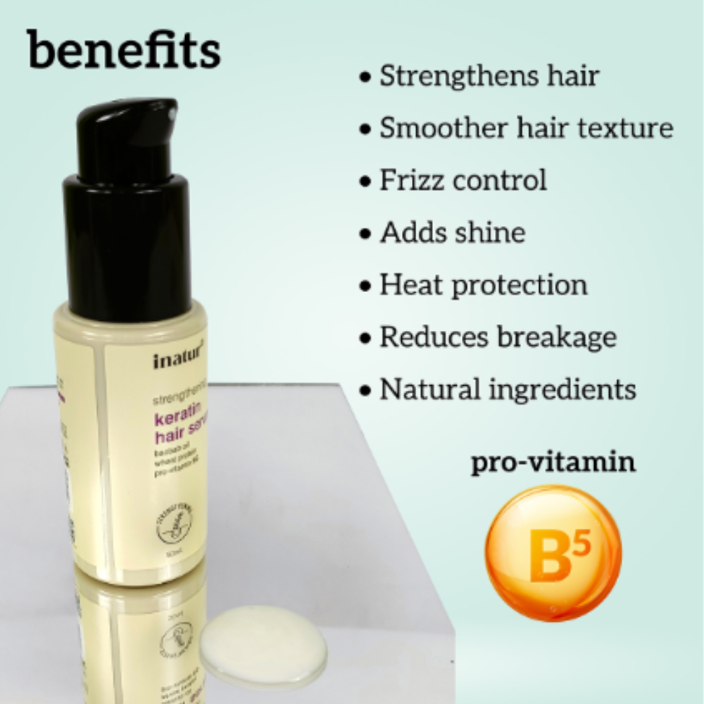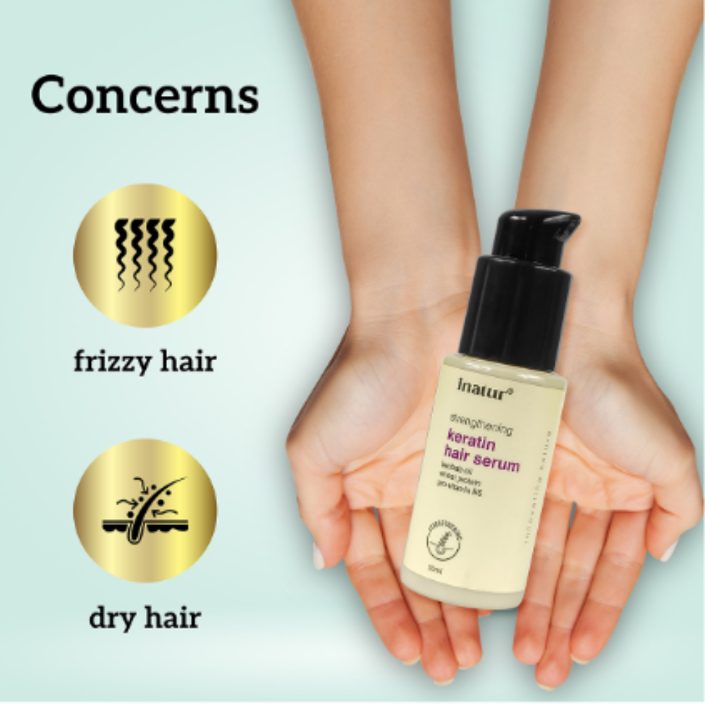 Inatur Hair Serum is a hair tonic to moisturize hair and control frizziness. It helps in untangling rough hair and prevents breaking and hair fall.