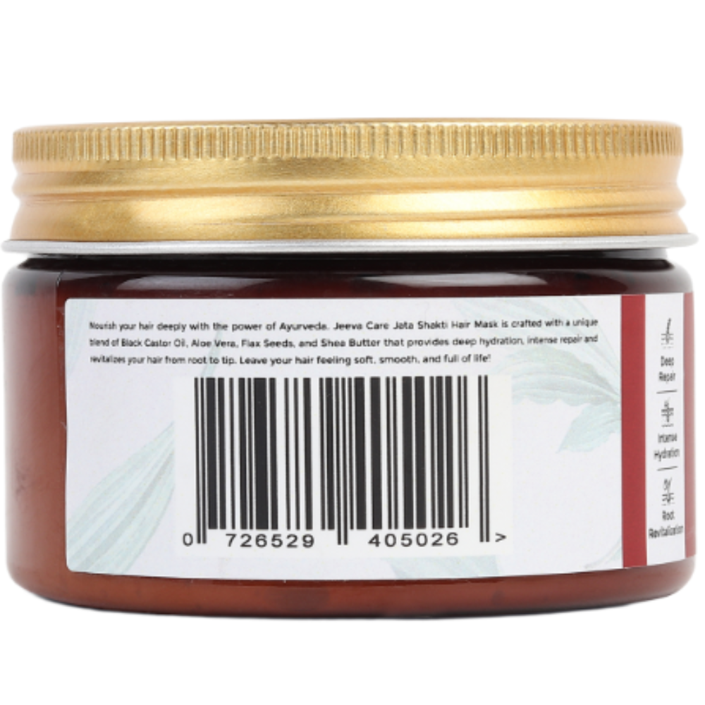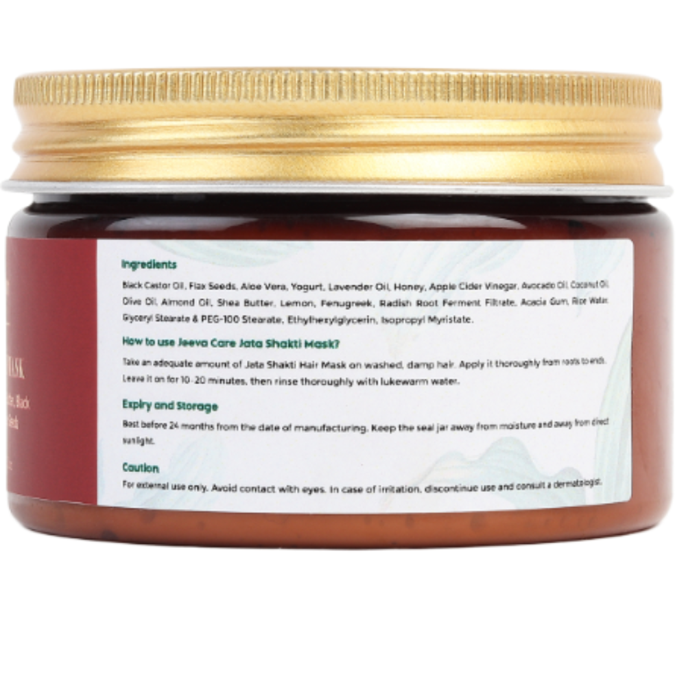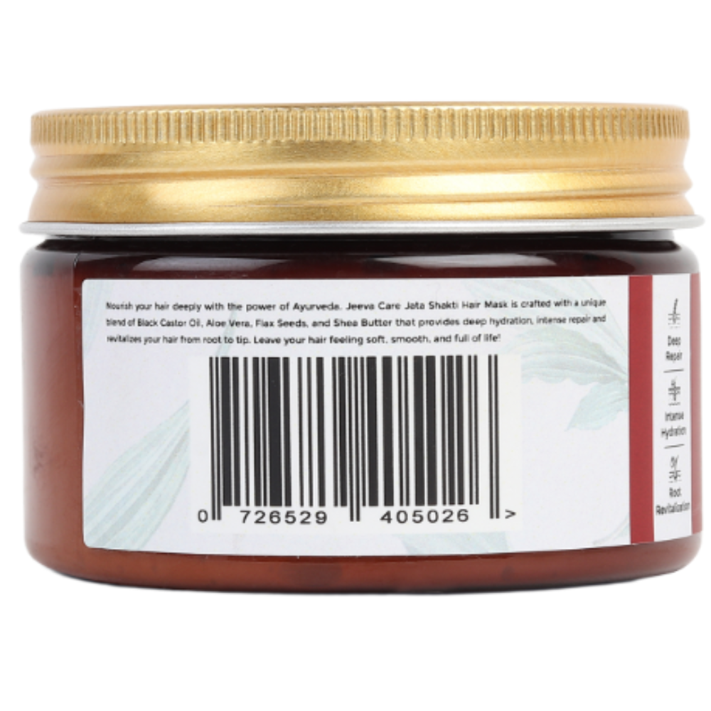 Jeevacare Jata Shakti Mask is a hair care formulation enriched with Aloe Vera, Shea Butter, Black Castor Oil, and Flax Seeds. It can help provide deep hydration and nourishment to the scalp and hair. The mask can support root revitalisation, assist in repairing damage, and help maintain smooth and soft hair texture.