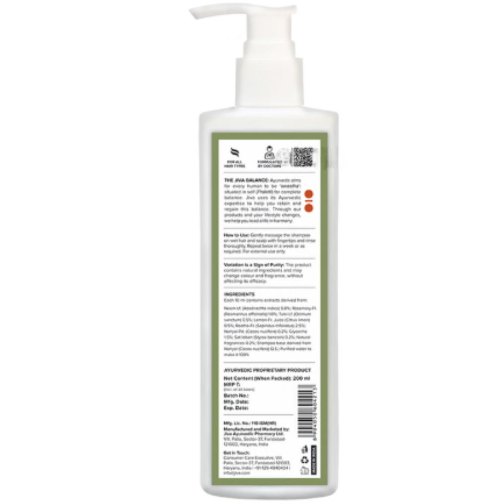 Jiva Neem Shampoo harnesses Neems power to pacify Pitta and Kapha doshas. It checks premature graying of hair and hair loss. Neem is one of the most useful natural anti-fungal agents known to man, making the shampoo effective against dandruff. The shampoo also helps treat itchiness of the scalp. Its soft, gentle lather does wonders to the scalp and nourishes hair by removing all impurities.
