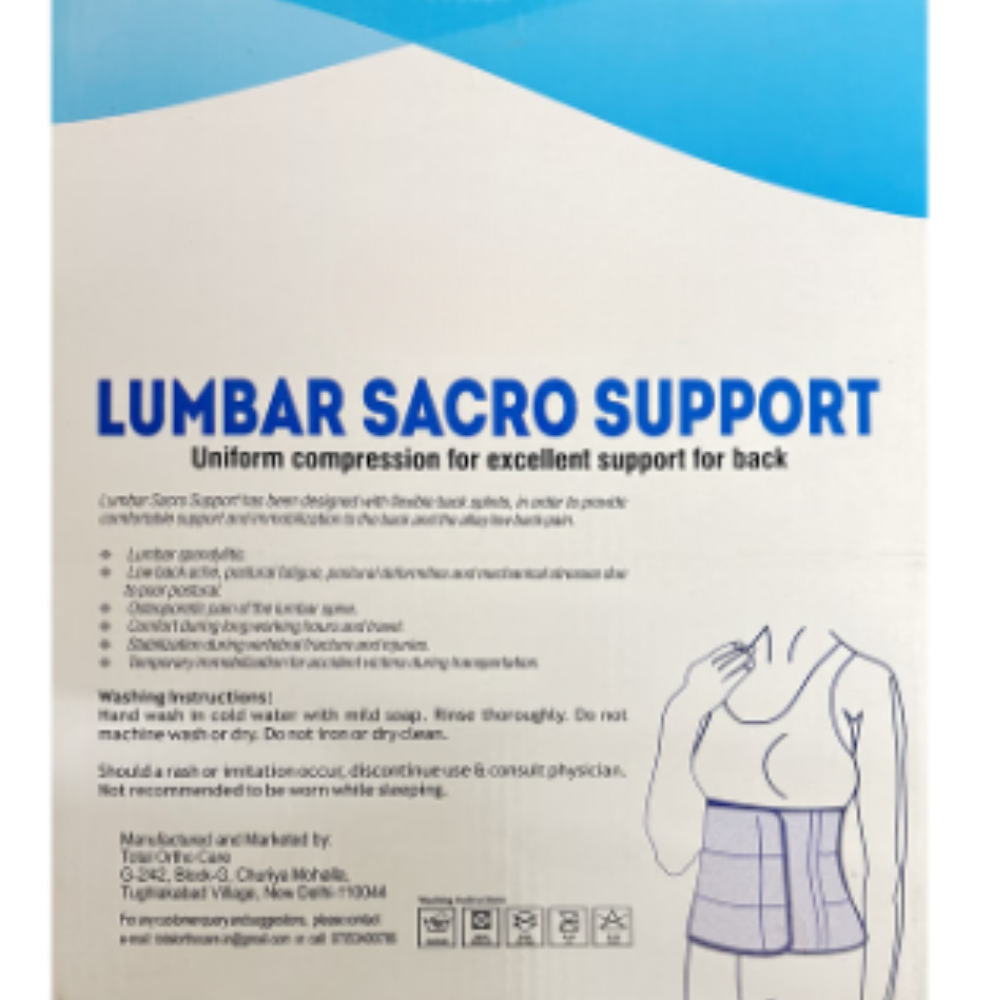 This device is used for lumbar spondylitis, postural fatigue, low back ache, osteoporotic lumbar discomfort, and temporary stabilisation during transportation or recovery.