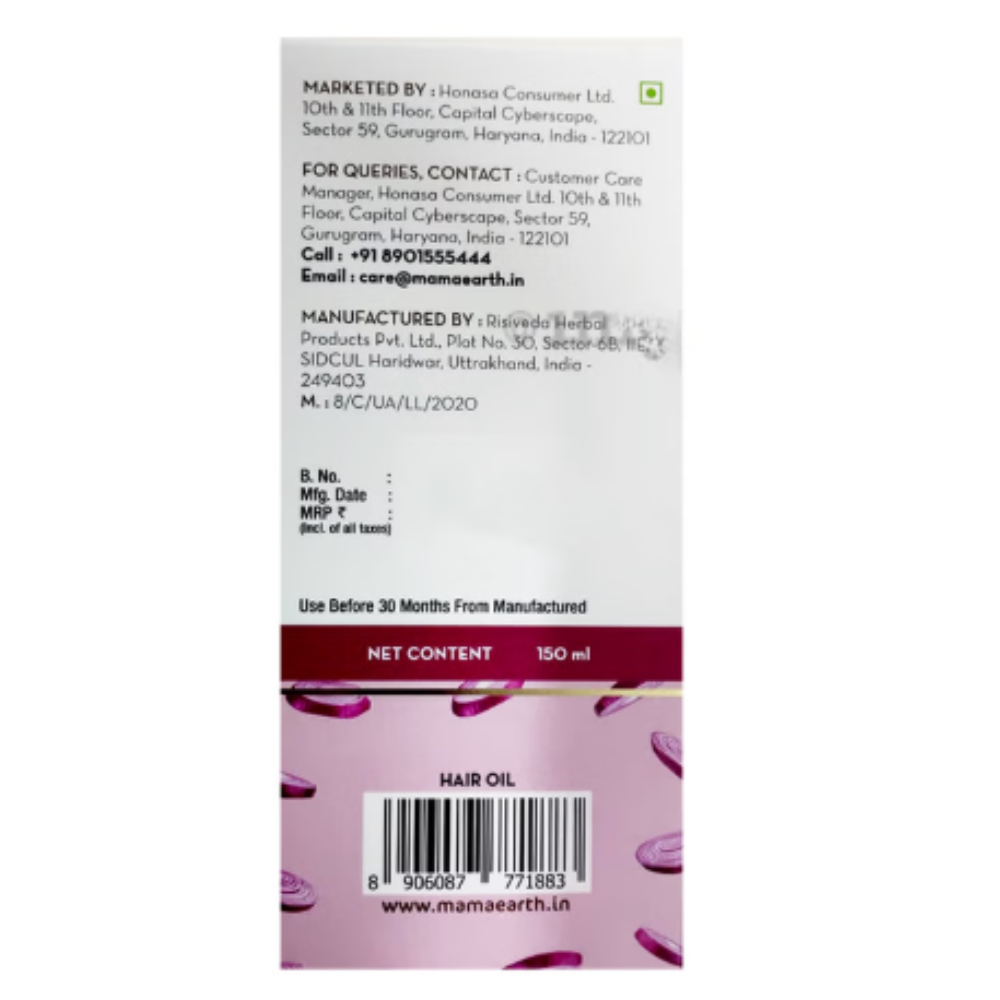 Information about Mamaearth Onion Hair Oil for All Hair Types | Mineral & Silicone-Free | Hairfall Control and Healthy Hair Growth