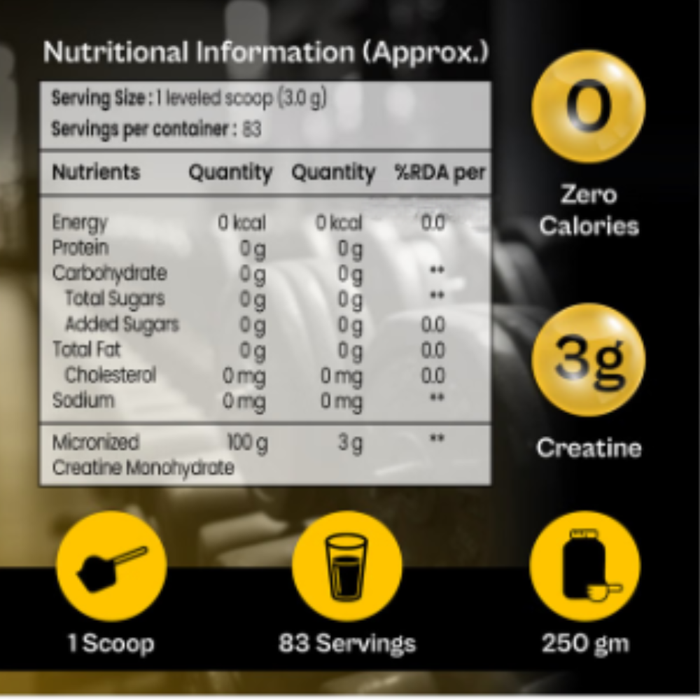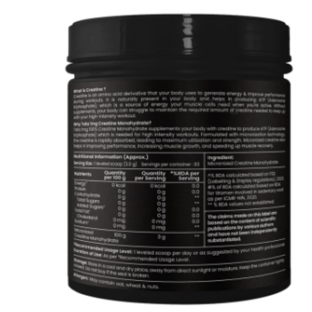Creatine Monohydrate is a 100% pure, micronized supplement designed to enhance strength, power, and muscle recovery. With zero calories, no additives, and no preservatives, it ensures uncompromised performance.