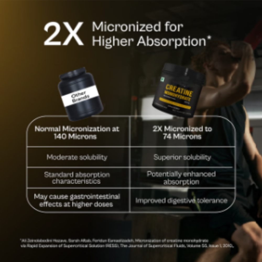 Fast Absorption for Maximum Effect: The micronized form ensures quick solubility and absorption, delivering creatine efficiently to your muscles for enhanced performance