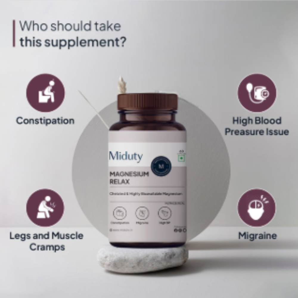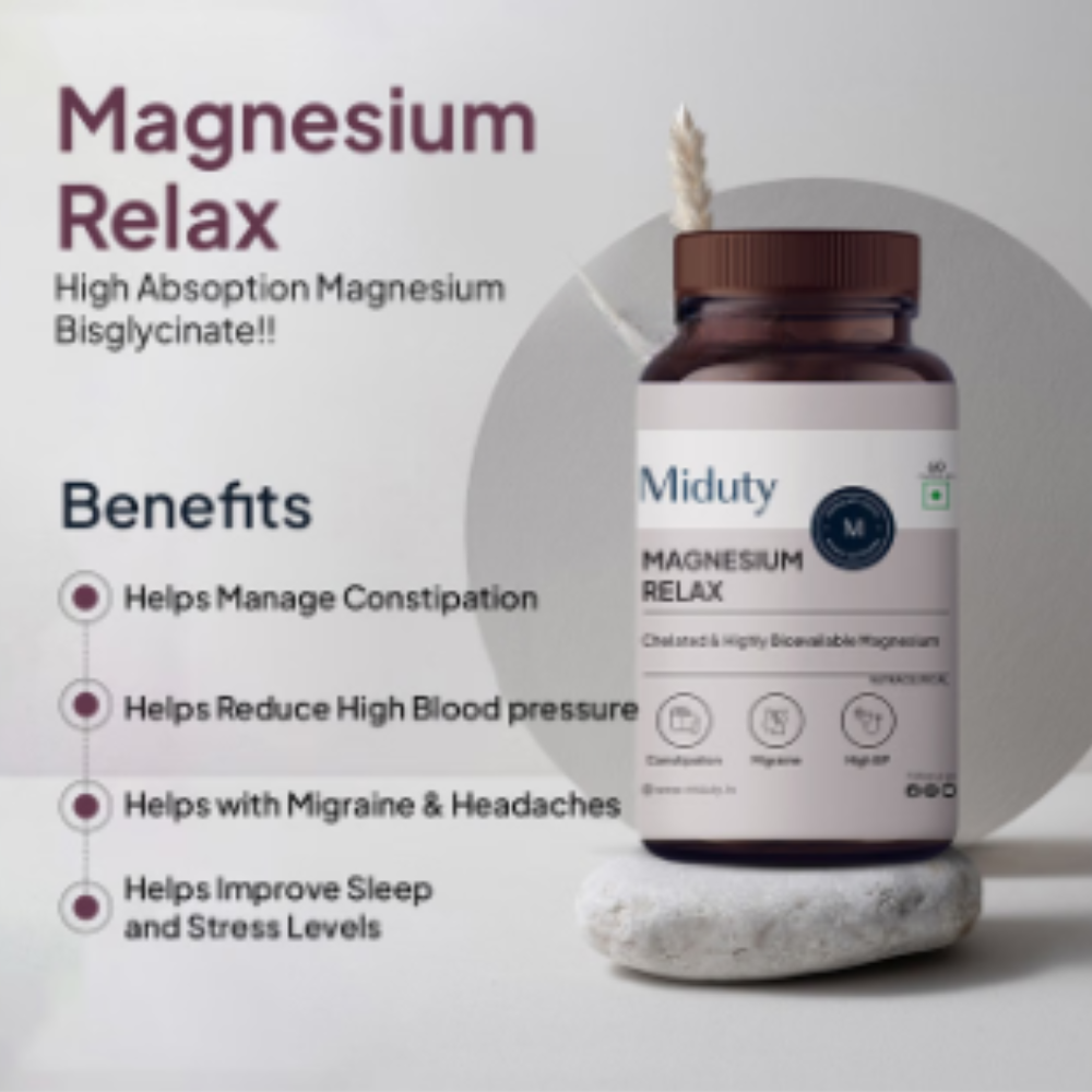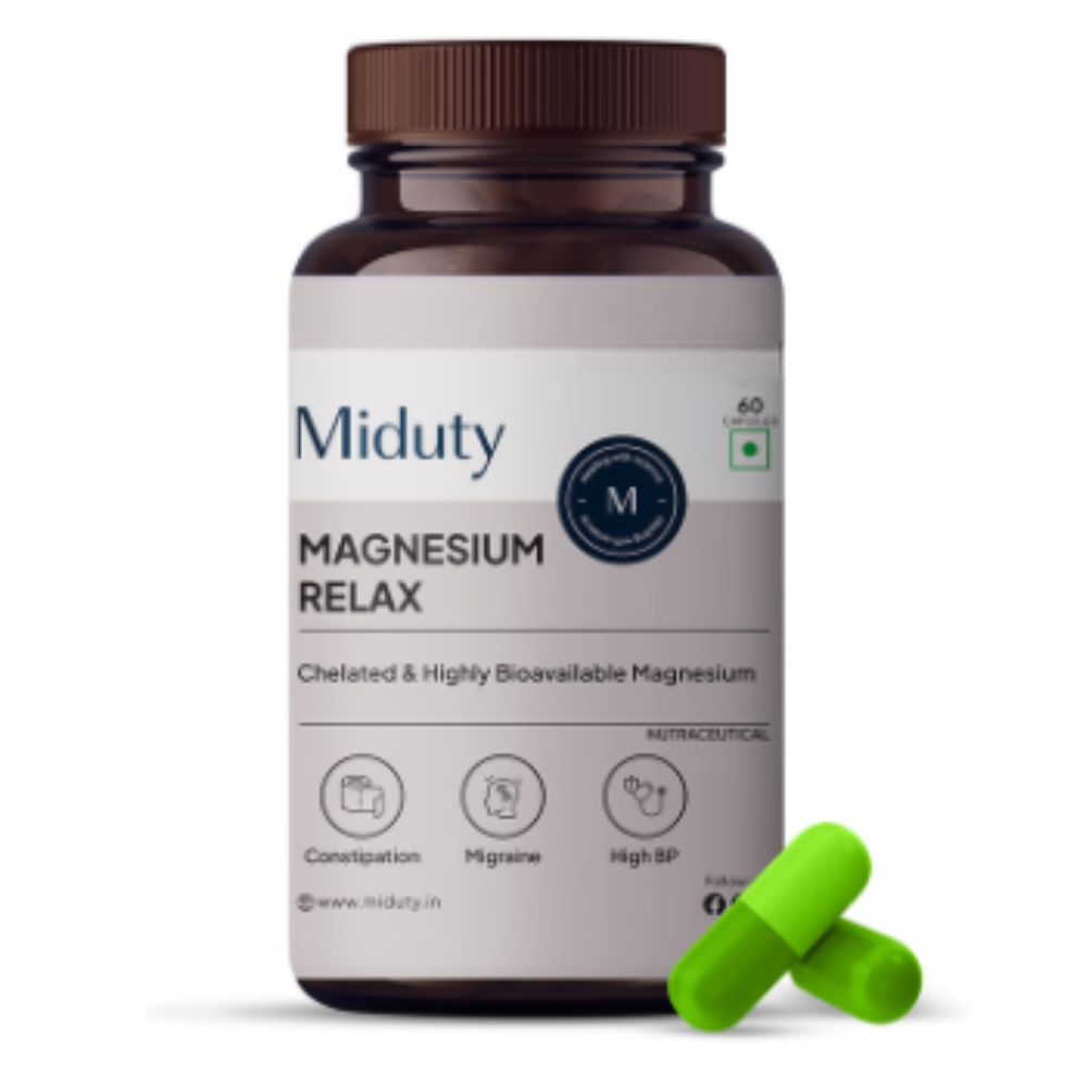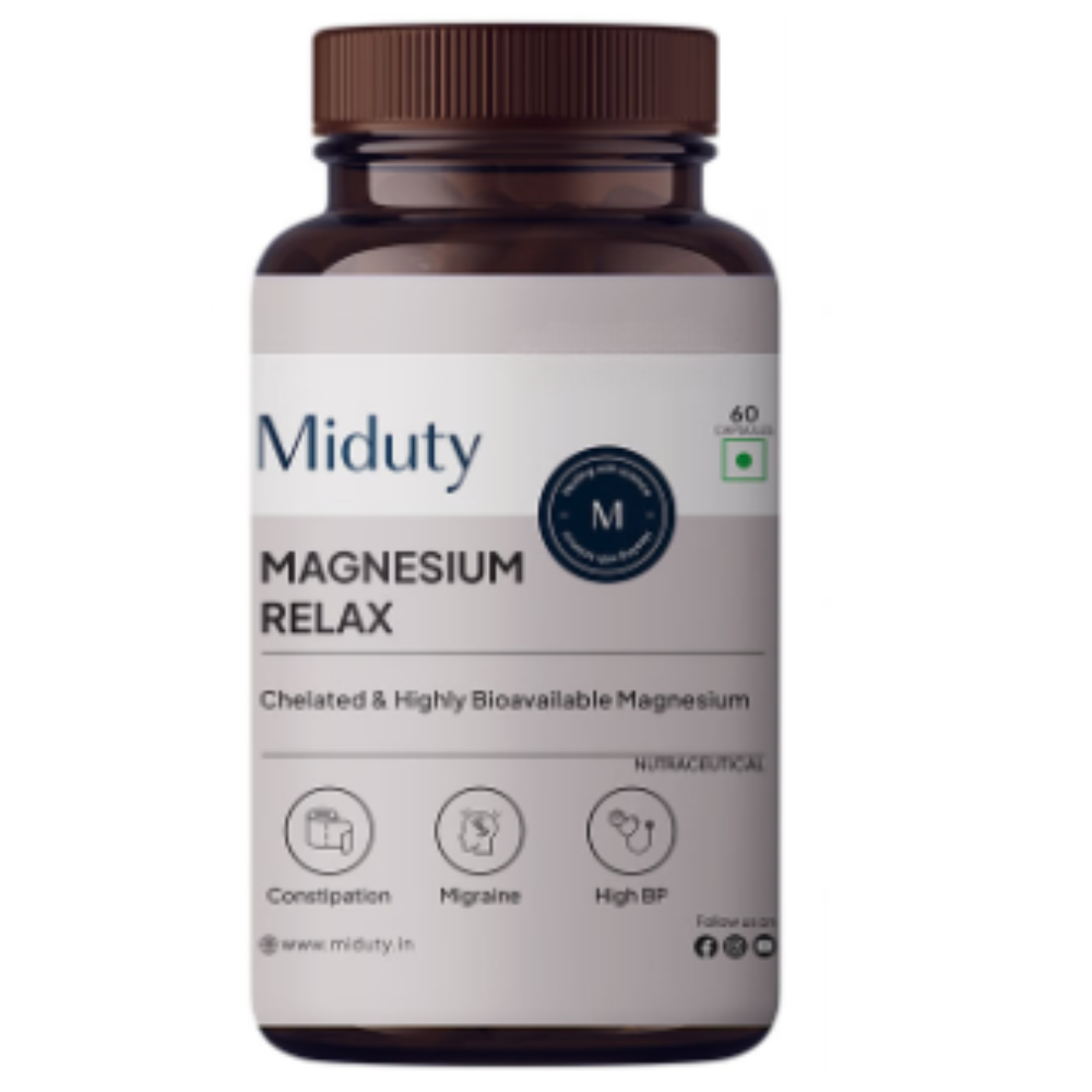 Miduty Magnesium Relax Chelated-Migraine-High BP-Constipation-Magnesium Bisglycinate Capsule
