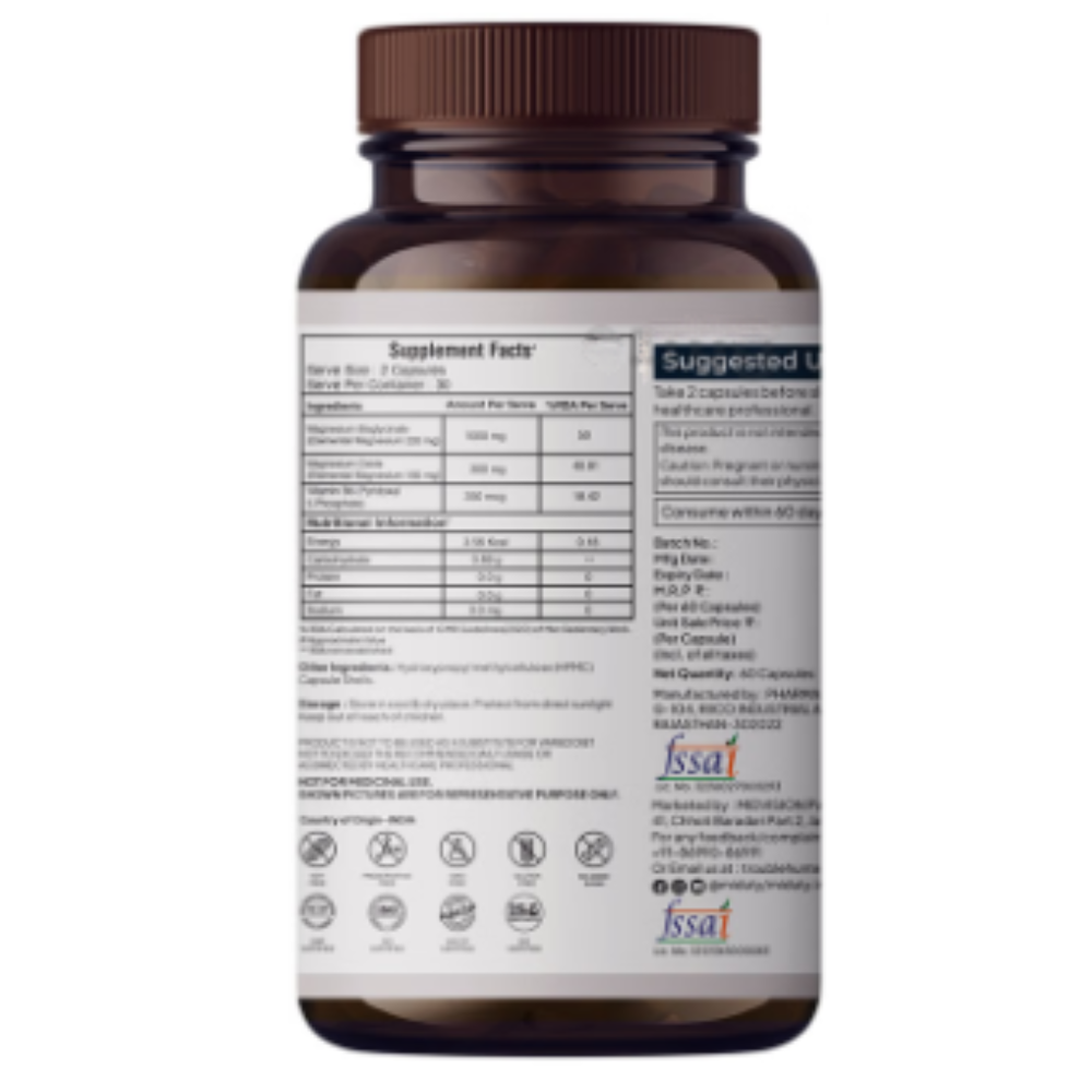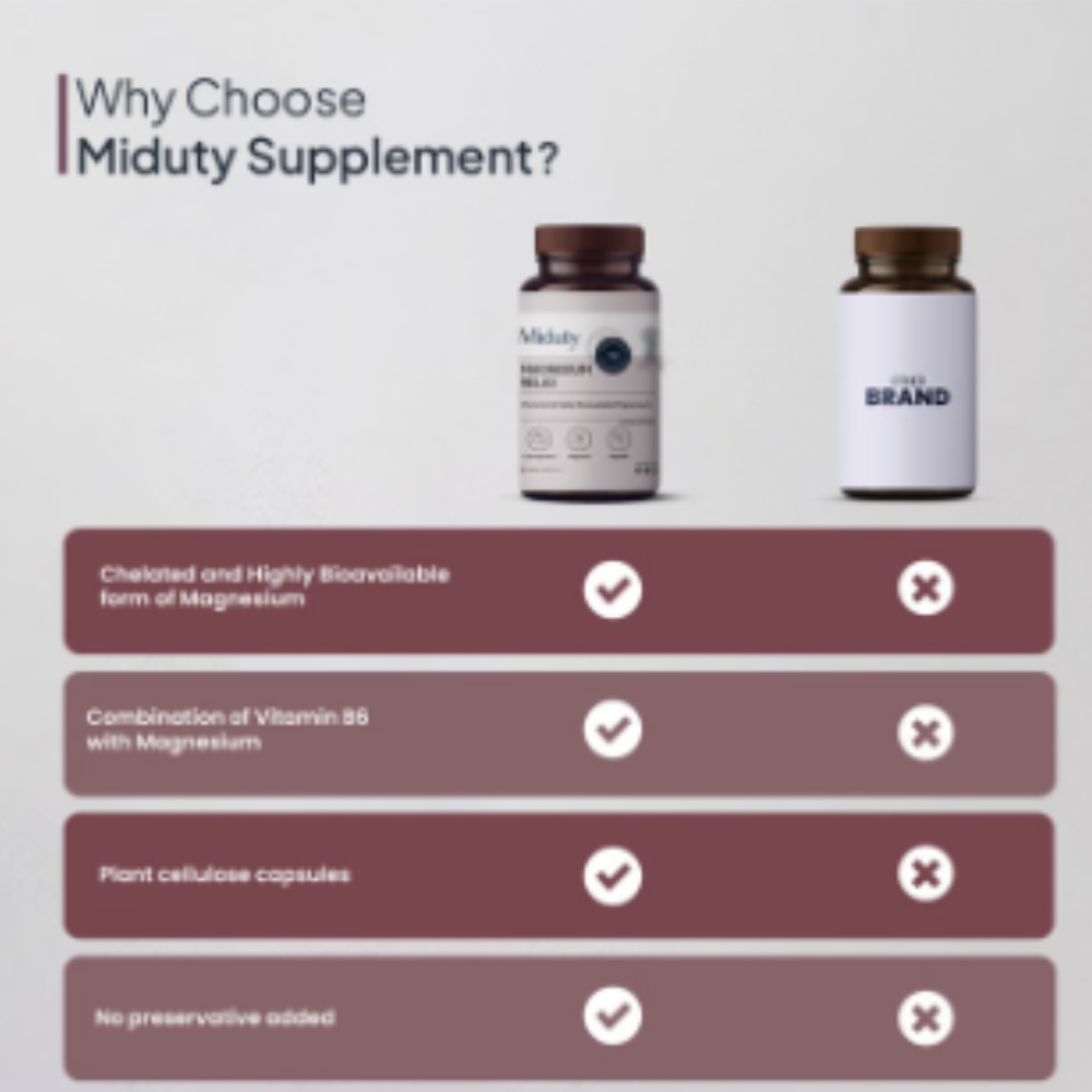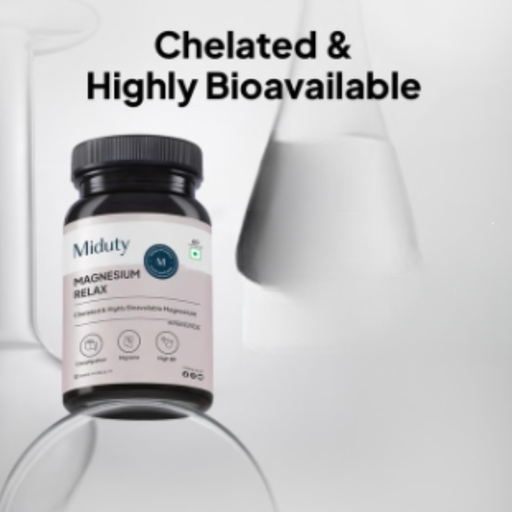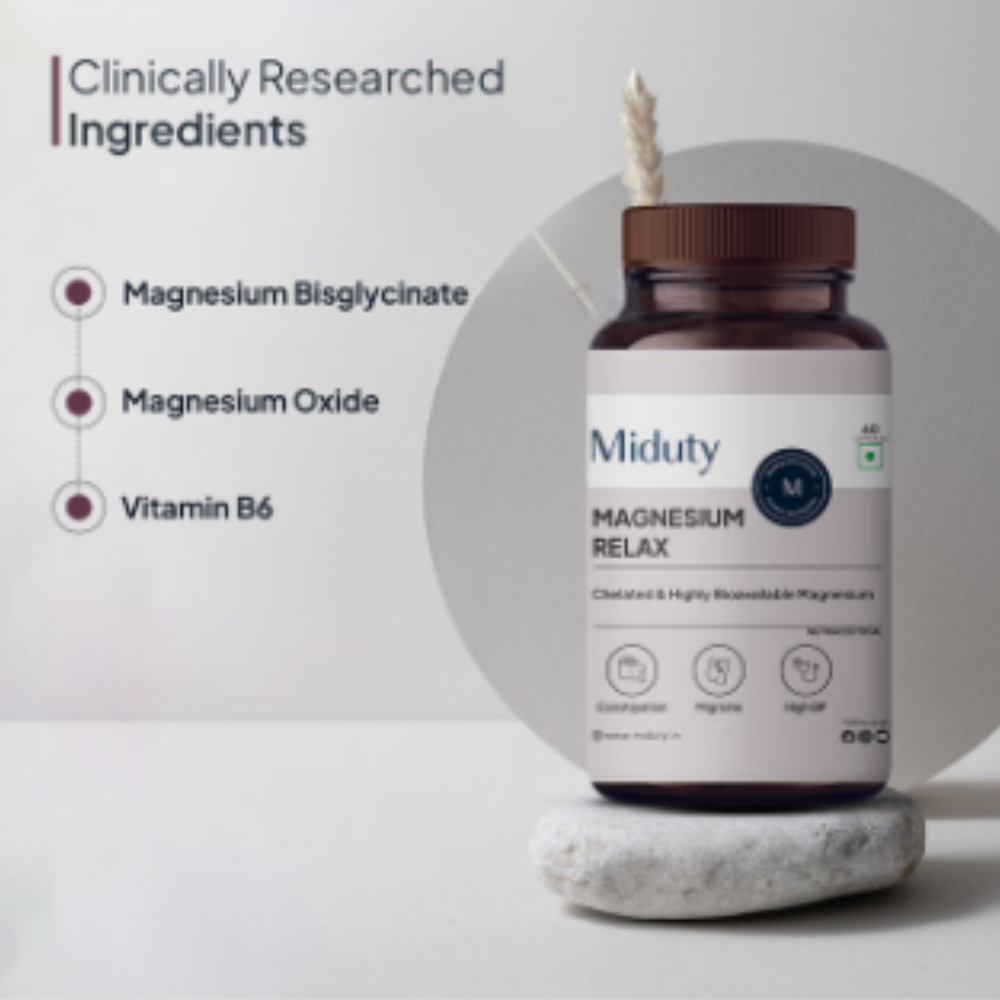 Miduty Magnesium Relax Chelated-Migraine-High BP-Constipation-Magnesium Bisglycinate Capsule