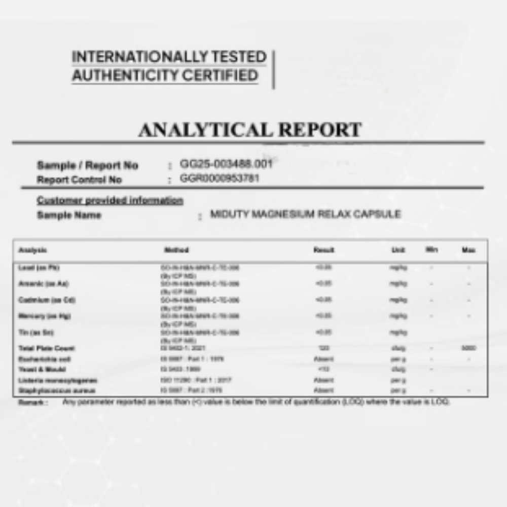 Miduty’s magnesium relax provides strong muscles, muscle tightness and soreness and maintain the quality of your sleep